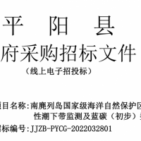南麂列島國家級(jí)海洋自然保護(hù)區(qū)生物多樣性潮下帶監(jiān)測(cè)及藍(lán)碳(初步)數(shù)字平臺(tái)的公開招標(biāo)
